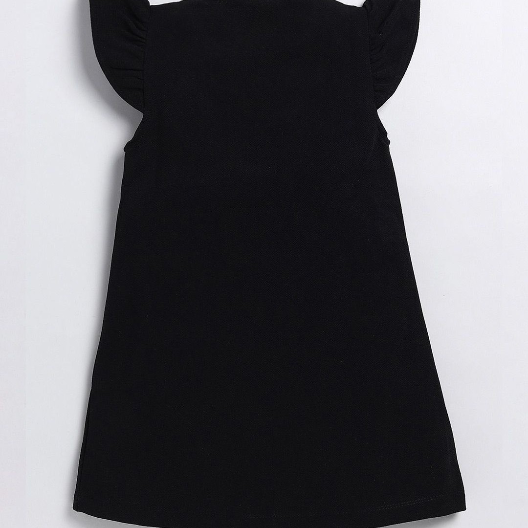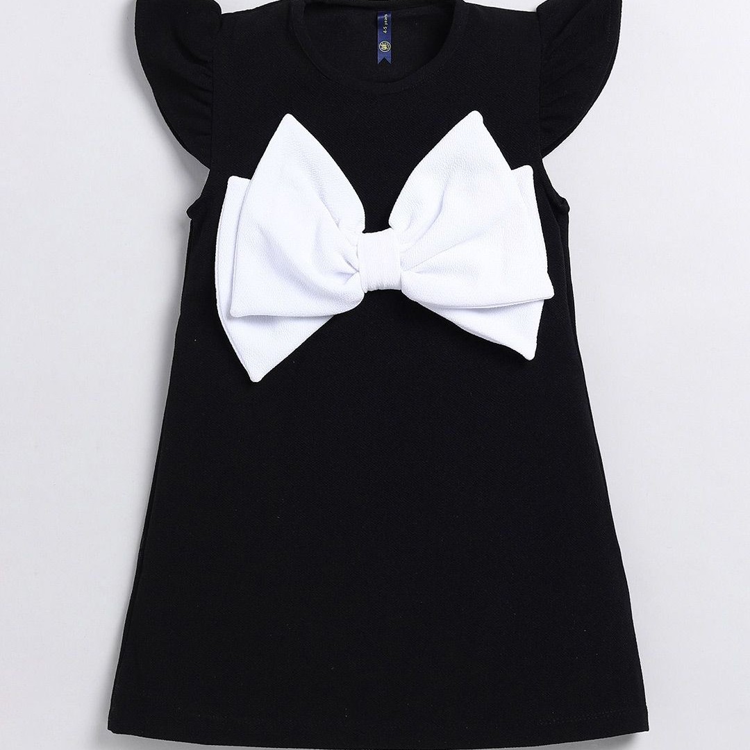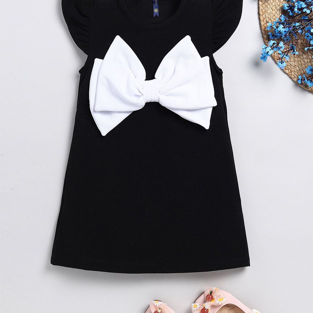 YK Girls Front Bow Styles Round Neck Solid Printed A-Line Dress