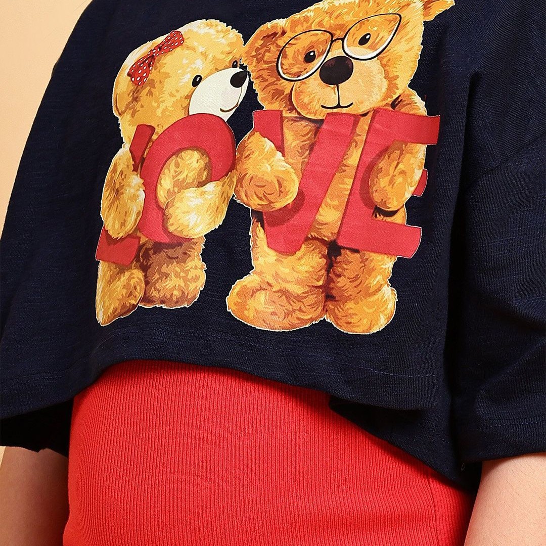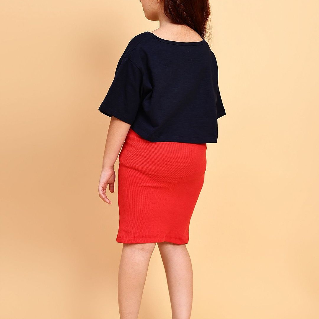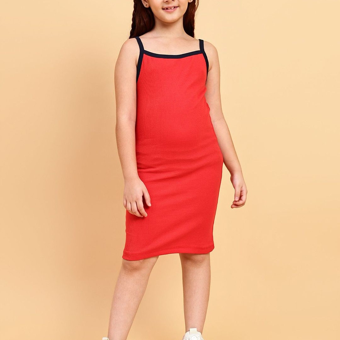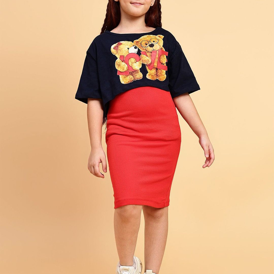 YK Girls Shoulder Straps Cotton Sheath Dress with Printed Crop Top